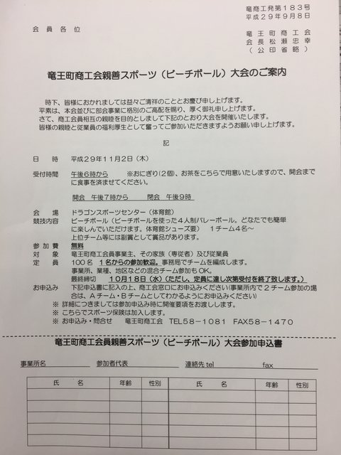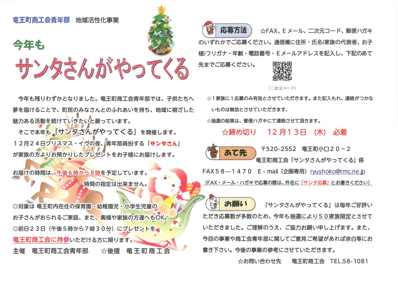 お問合せ 竜王町商工会女性部(TEL 0748-58-1081 平日9:00~16:00)