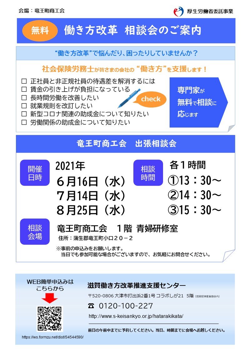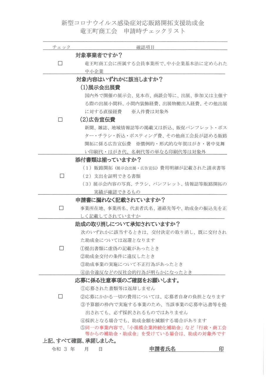 竜王町商工会では、事前確認の受付は会員事業所様のみとさせていただきます。ご了承ください。