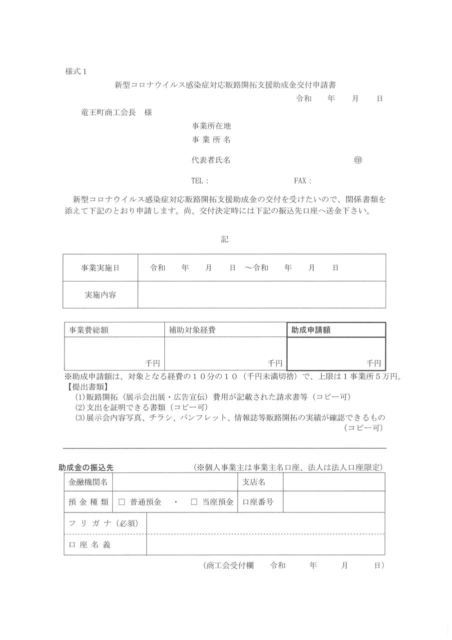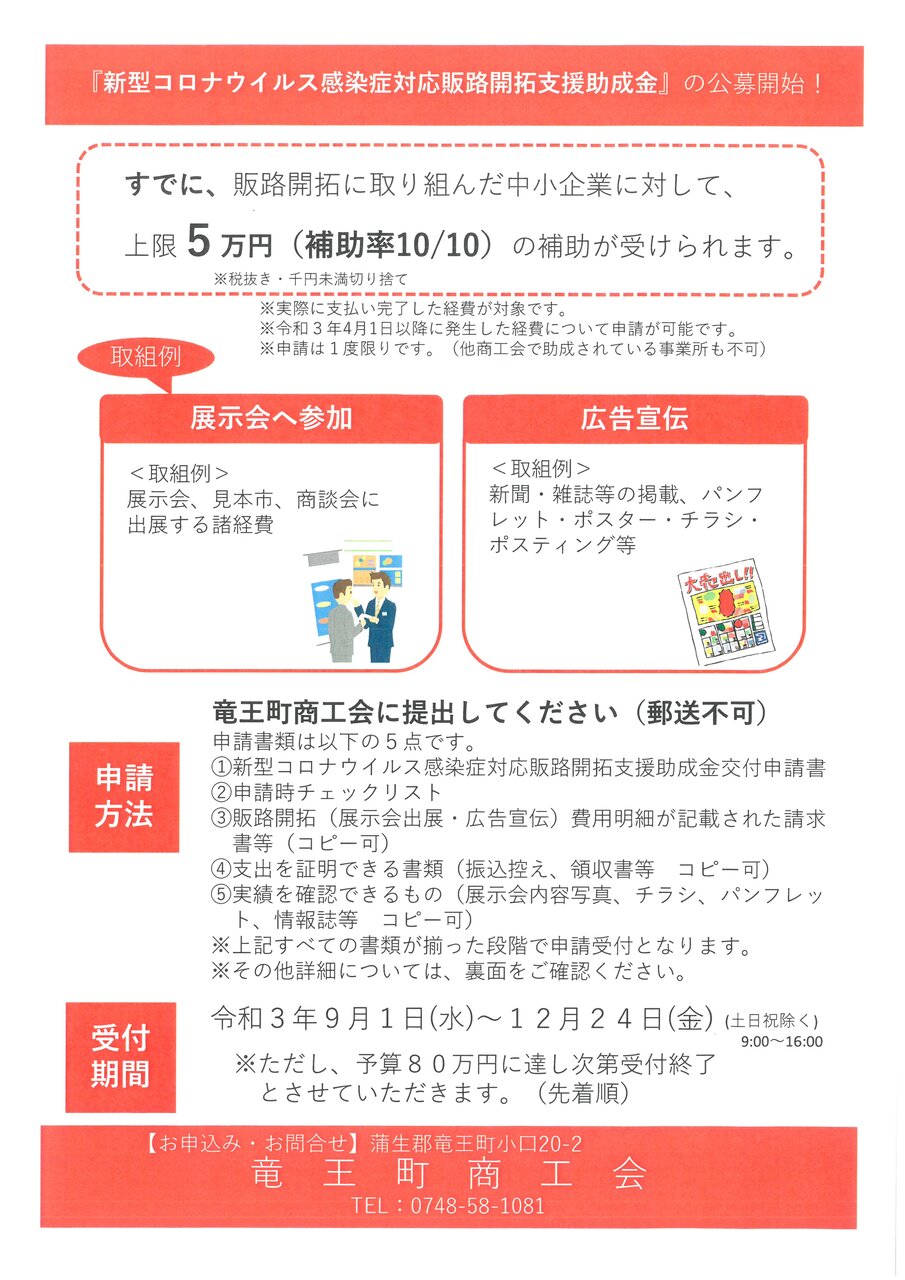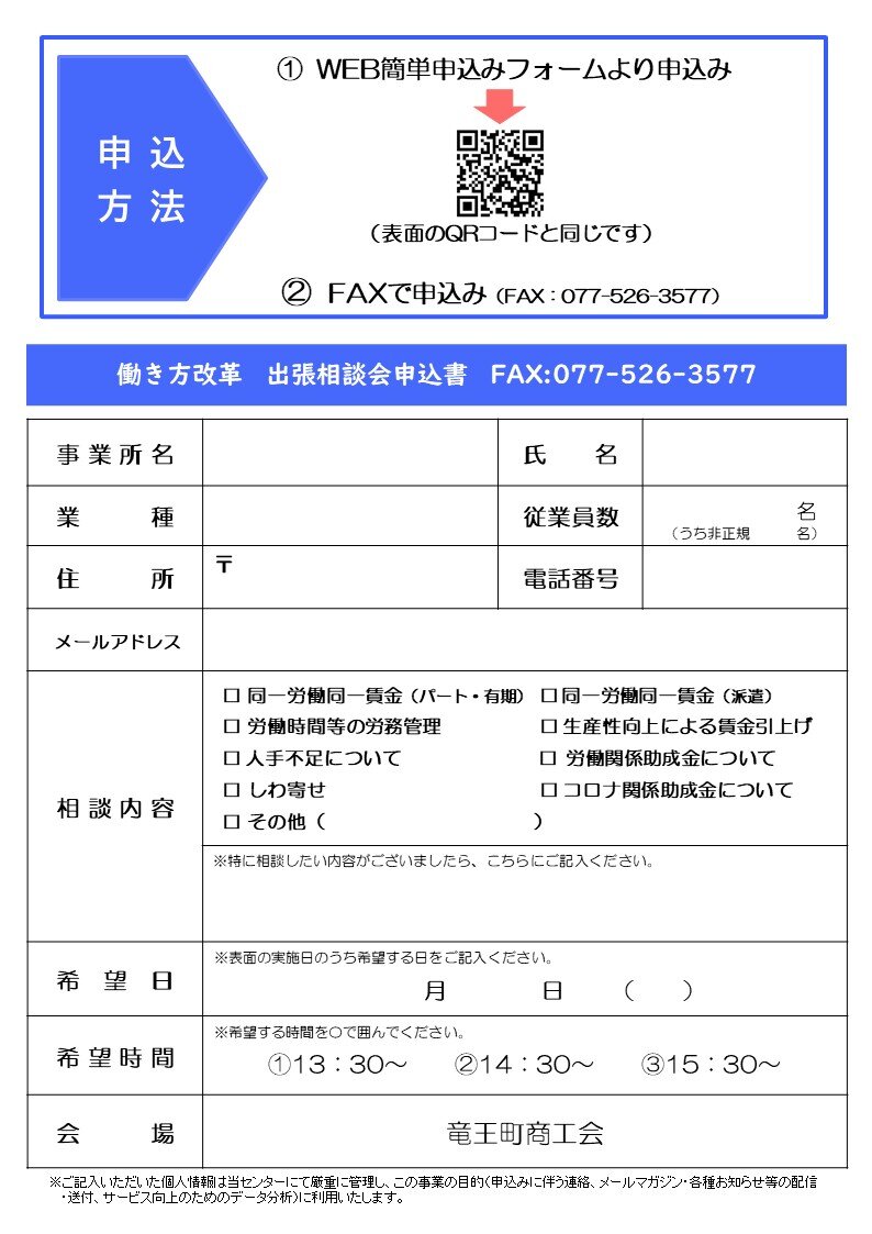 申込方法 竜王町商工会まで希望日・氏名・電話番号を記載の上、FAX(0748-58-1470)か