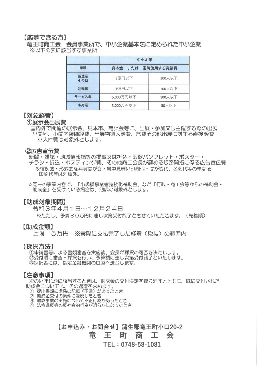 7.お問い合わせ 竜王町商工会 TEL 0748-58-1081 担当:金子